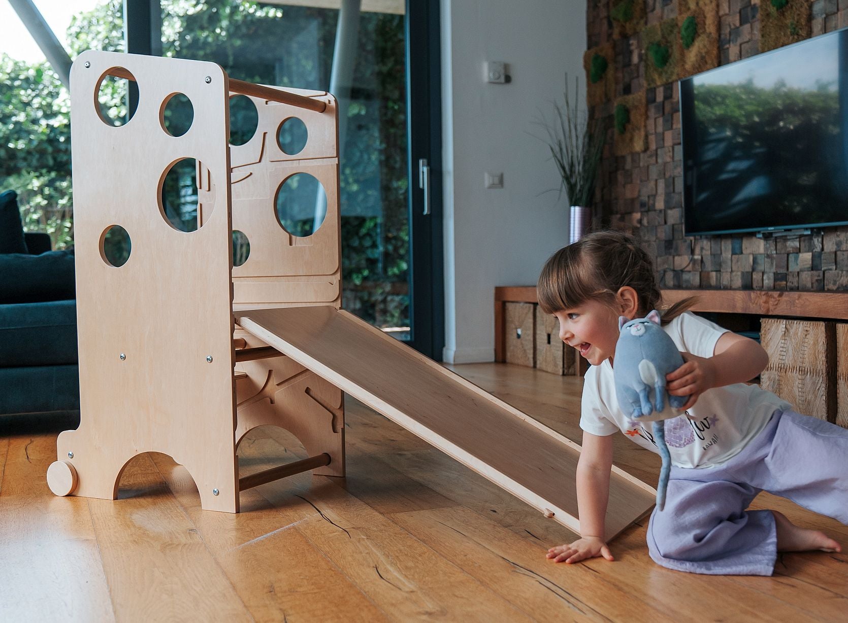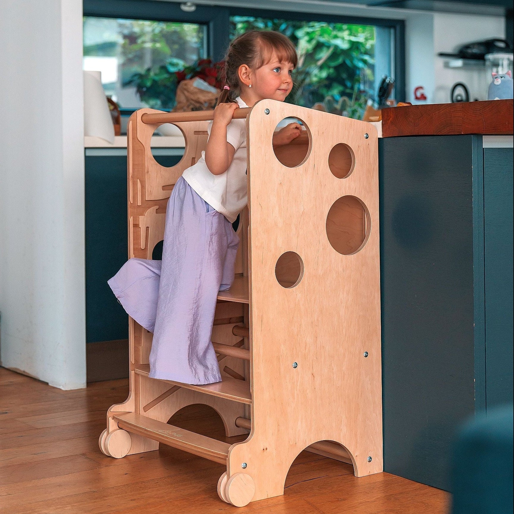 Der Leea-Turm wurde als multifunktionales Produkt konzipiert und lässt sich je nach Bedarf umwandeln und anpassen. Zusätzlich kannst du ihn mit Zubehör für zahlreiche Aktivitäten erweitern.