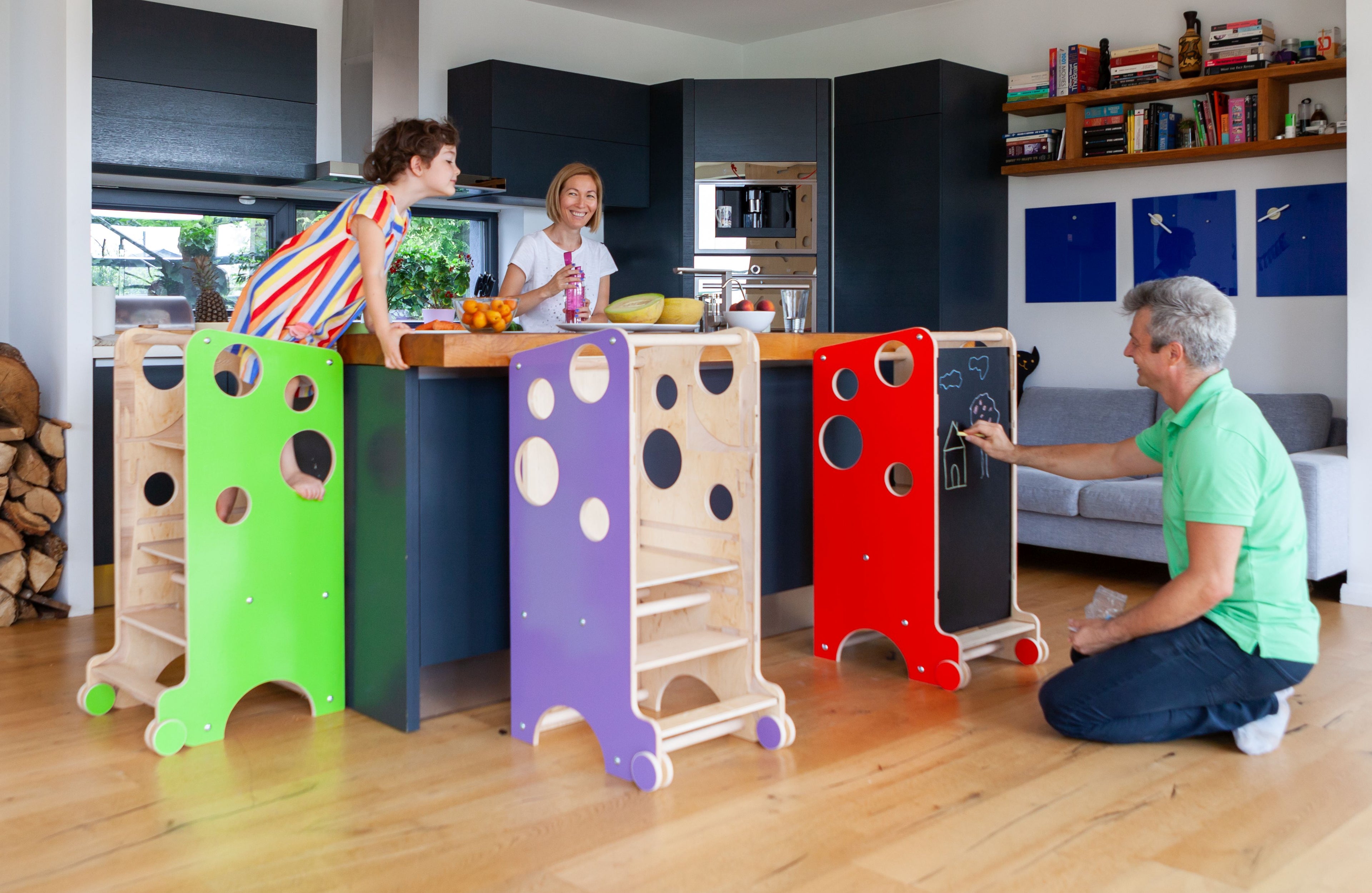 Inspiriert von modernen, kinderorientierten pädagogischen Methoden haben wir verschiedene Ideen und Lösungen ausprobiert, und nach jahrelangen Versuchen entstanden der Leea Learning Tower und die Leea Adventure Corner. Sie wurden sehr gut aufgenommen und haben auch einige internationale Designpreise gewonnen.